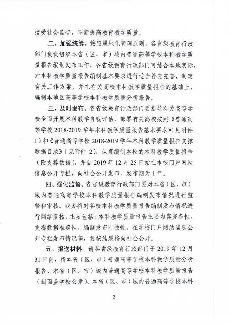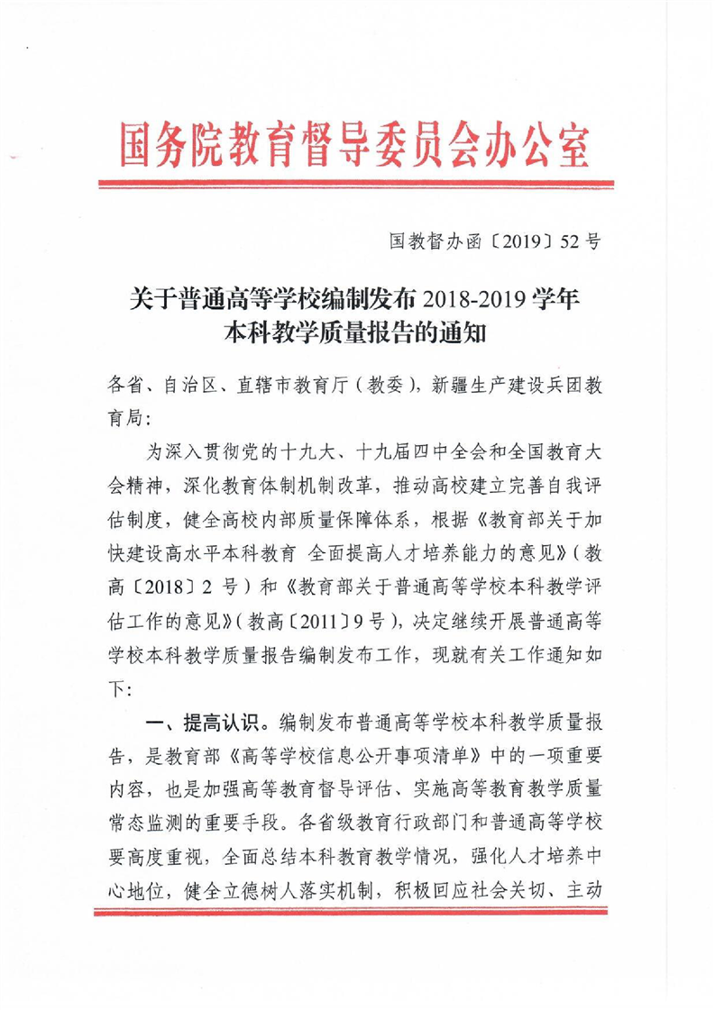 关于普通高等学校编制发布2018-2019学年本科教学质量报告的通知